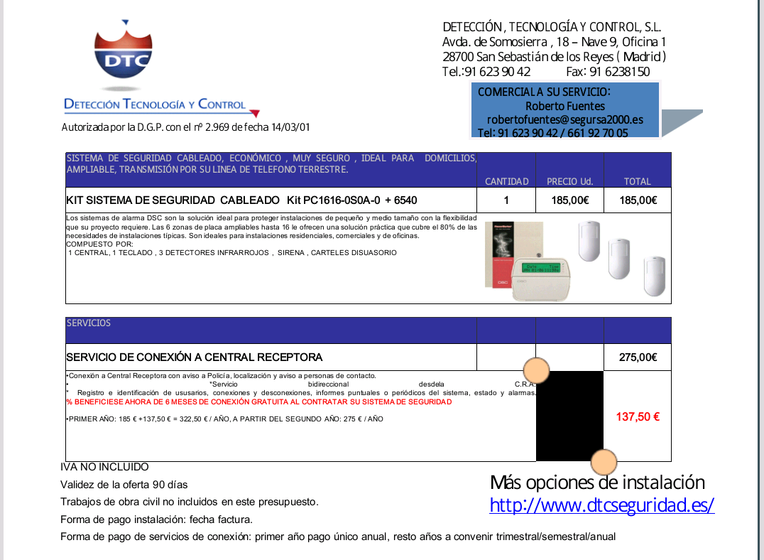 DTC SEGURIDAD empresa lider del sector nos ofrece una oferta en la cual nos regalan 6 meses de conexion gratis para el montaje de las alarmas de nuestros hogares y asi mantener nuestros bienes seguros.